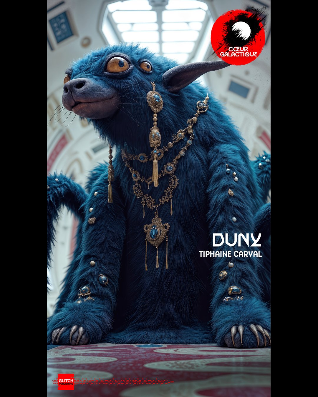 - Apparence : Duny est une géante laineuse à la peau bleue, dotée de six pattes terminées par des mains, et de deux genoux par patte. Elle possède quatre grands yeux bleus, une stature imposante, mais une allure douce et accueillante.